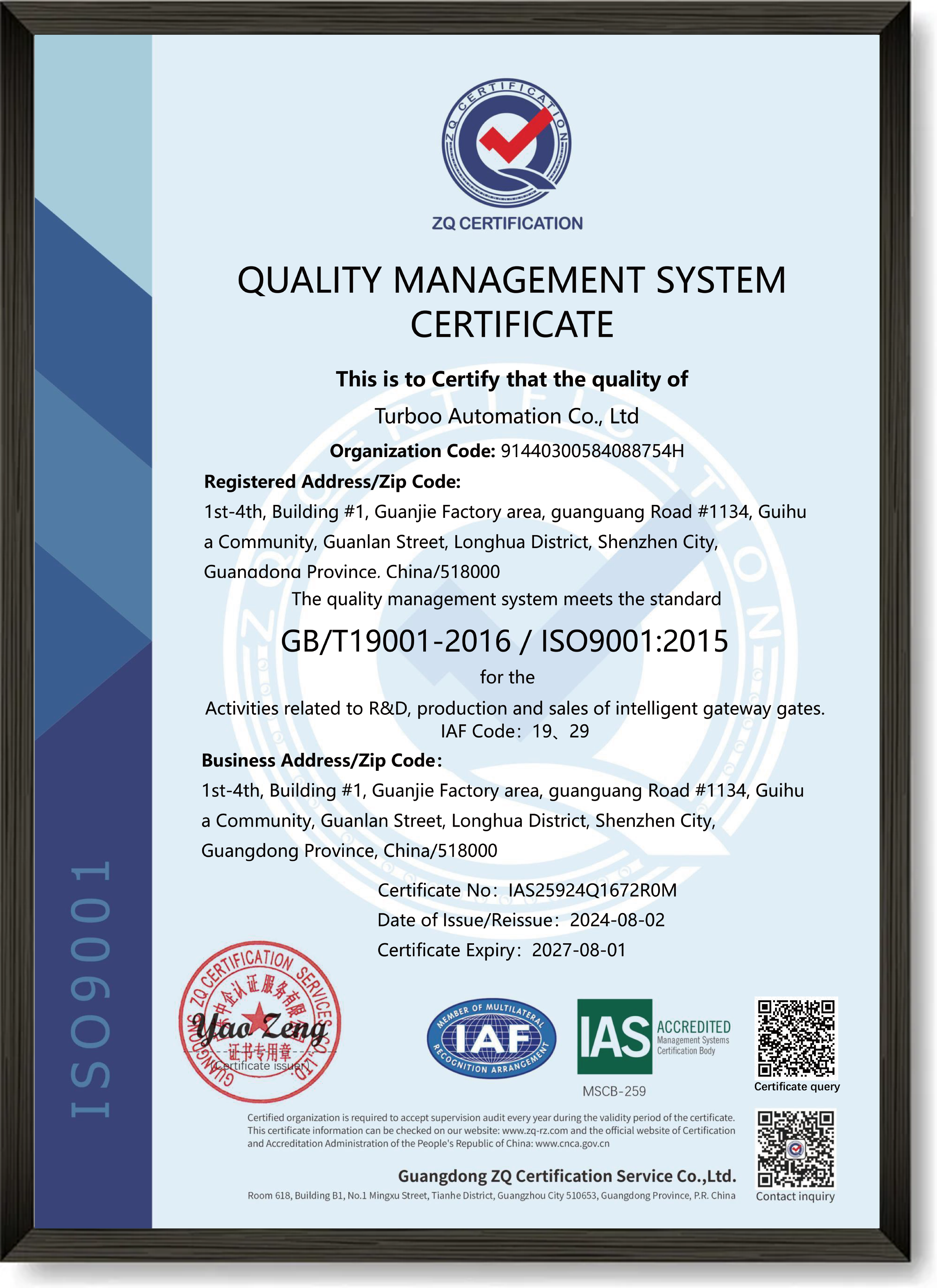 Founded in 2006, Turboo is a national high-tech enterprise specializing in the research, development, manufacturing, sales, and service of intelligent pedestrian access control equipment. The company’s main products include turnstiles, wing gates, swing gates, speed gates, full-height rotary gates, and sliding doors, which are widely used in large-scale venues such as high-speed rail stations, BRT systems, airports, as well as in factories, parks, and other diverse scenarios.
